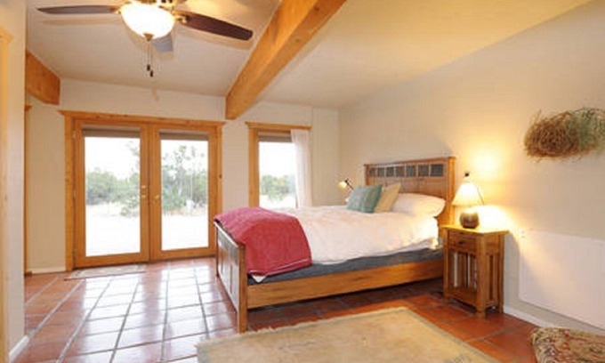 The french doors to your beautifully- appointed suite with sitting area and comfy bed open out to a country setting. You will enjoy stunning views of the desert expanse to the south and pine-studded mountains to the north. Watch those famous New Mexico sunsets after a day of activity in historic downtown Santa Fe, just 19 minutes away. Close to winter sports, wilderness hiking, five-star restaurants, sightseeing, cultural activities and all the magic New Mexico has to offer.