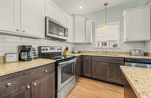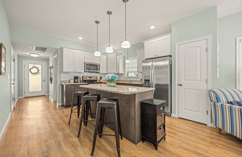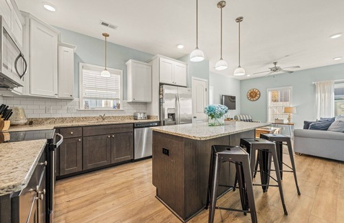 The lovely King En Suite features a lovely wooden bedroom set with a show-stopping bathroom that boasts double sinks and an oversized tiled stall shower. Two additional Queen bedrooms that share a hall bath. All 3 bedrooms contains flat screen HDTVs. Won't it be wonderful to watch whatever you want without fighting over a remote?!