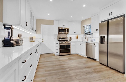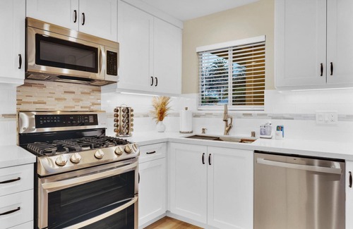 Located in Carlsbad, this 3-bedroom, 2-bathroom vacation home lets you experience it all. Fans of nature and the outdoors will love being 10 minutes by foot from Carlsbad State Beach and 11 minutes from Tamarack Beach. Carlsbad Lagoon is within an easy 12-minute walk and Holiday Park is also a quick 14-minute walk away, so leave your car at the property, which offers covered onsite parking.