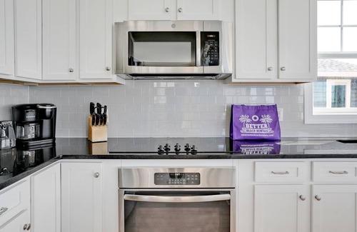 Step inside to discover a bright and airy living space designed for relaxation and entertainment. With sweeping ocean views, the spacious living area invites you to unwind after a day of beach activities. The modern kitchen is fully equipped to meet all your culinary needs, featuring ample counter space and contemporary appliances.