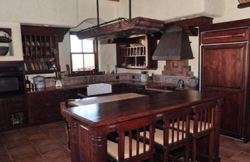Dos Corazones was designed in the tradition of a grand Chihuahuan hacienda. High ceilings, rich wood work, stucco adobe walls, artful stone masonry, and elegant tile floors make every room exquisite and inviting. Many architectural items, including doors, hardware, and fixtures, were salvaged from historic buildings in Mexico, South Africa and Morocco and artfully incorporated into this wonderfully designed home. The interior décor proudly features an extensive collection of folk art, baskets, and textiles that the owners collected from their world travels.
