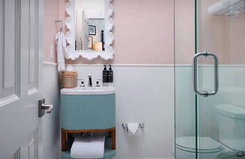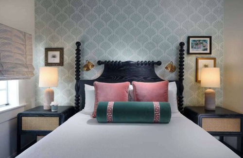 ▶ Located within the elegantly restored Avalon Guesthouse, the Petite Queen is a masterclass in stylish efficiency. This room offers a refined, beach-chic atmosphere within a historic Victorian setting, perfect for guests who want an upscale home base while spending their days exploring the island.