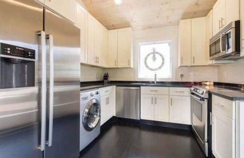 Relax by the hot tub during the day or walk to the village for free shuttles to Main Beach. The house is just a few blocks from Serafina and the famous Nick and Toni’s. Complimentary cruiser bikes included to get around town. IGA supermarket is around the corner and gas grill is on site and ready to use. The house is also walking distance to the train station if your coming from Manhattan. The second bedroom features a Murphy Bed that folds out of the wall and over the couch pictured.