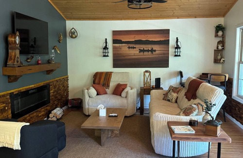 Well-stocked kitchen and baths, washer and dryer, plenty of flat parking, fire pit, side yard for dogs and kids to run around and PING PONG! Bring your pets, kayaks, tubes, SUP’s, fishing poles, hiking shoes and skis. There’s so much to explore!