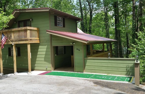 Echo Place has over 1,580 SF of living area with lots of surrounding porches and decks. A bedroom and bath on each of the three levels makes the ideal setup for up privacy when more than one couple/family come together for fun in the Smokies. We advertise to sleep (8) due to size of cabin. However with the sofa bed and loft cubby it can actually sleep eight (8) adults and three (3) children comfortably. Plenty of very well lit parking for at least 4 vehicles. Zero steps to the main level!