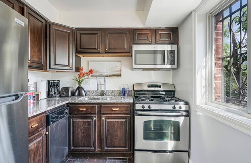 • Full Chef’s Kitchen: Save your per diem with full-sized appliances, coffee station with both a drip coffee machine (w/grounds) and Nespresso (w/pods), and cookware for healthy, home-cooked meals. Credit-card operated commercial-grade laundry machines located in the basement.