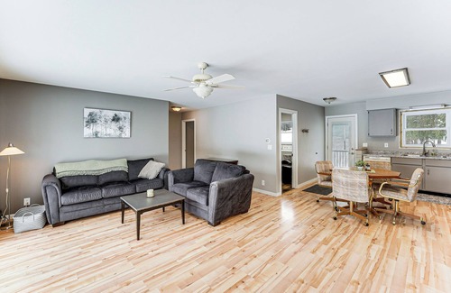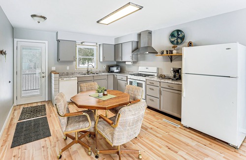Fuel your sense of adventure at this 2-bedroom, 1.5-bath vacation rental in Paris, MI! With the Muskegon River as your backyard playground, you’re set for endless days of outdoor fun. Bring your tube and float your way through the winding waters, reel in your next big catch, or take a day trip to trek the trails at Manistee National Forest. Afterward, unwind with a movie night at this cozy cabin.