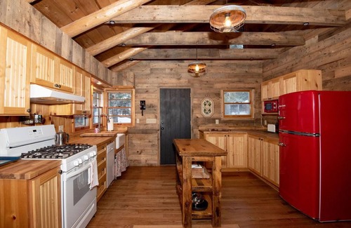 Welcome to Fish Hook Cove! Ideally located on Cascade Beach Road halfway between Lutsen and Grand Marais, this vintage 2 bedroom, 1.5 bathroom cabin was built in 1938 and updated in 2019 to add modern conveniences to this quaint retreat's original charm and character. A large wood burning fireplace constructed from hand- picked stones from the property’s stunning shoreline is the focal point of this comfortable cottage that sleeps four. Recent updates include: fully remodeled bathrooms and kitchen complete with all new appliances, including a dishwasher, an expansive multi-level deck modeled after the original deck built in the 1930's. Adding to the historical significance of this vintage cabin is the re-use of white pine harvested from the Old Globe Grain Elevator in Superior, Wisconsin. Half of the cabin's interior walls, along with several meticulously hand- crafted pieces of furniture, use the nearly 200 year old Old Globe Elevator white pine - check out the many Old Globe Elevator photographs framed with Old Globe white pine. The cozy cabin is only half of the story. This stunning lake shore property includes a winding path to a wooden foot bridge across a private cove leading to a meandering massive ledge rock shoreline. Fish Hook Cove is the perfect mix of unmatched lake views, dramatic accessible shoreline, comfort, and vintage charm.