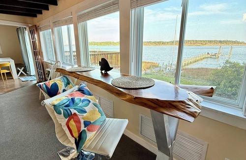This spacious five-bedroom retreat offers plenty of room for your group to spread out for individual activities, then come together for meals (such as low country crab boil), games, movies, and unforgettable moments. Numerous windows on the harbor side provide a stunning backdrop for everything from intimate breakfasts to lively family reunions.
