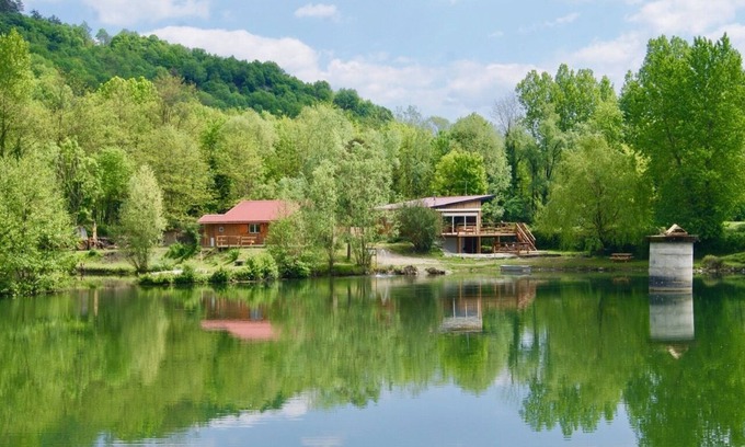 In a wild setting to live to the rhythm of nature, chalet furnished with luxury and comfort, can accommodate up to 6 people, at the edge of a private and enclosed pond. With its large terrace over the water, you will appreciate the proximity of the pond, with an incredible view closer to nature! Cozy and chic decor: wood, marble, and large windows, the rooms are bright. Two terraces equipped with hammock, garden furniture, deckchairs for a relaxing stay. A boat and vests are at your disposal, and you can access a private part of the pond for sport fishing or relaxation. The region also offers a multitude of activities. Water skiing within 1km, nautical base 3km and Walibi Rhone-Alpes Park 3km.
