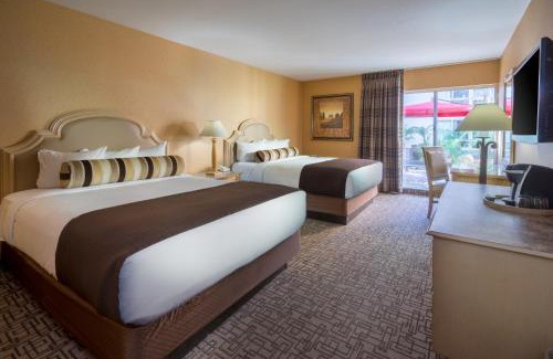 Please note: the property will charge the first night's room and tax on the day of booking, guest will be authorized a check-in fee for a standard room and and an additional fee for a pet friendly room. please contact property for more details on the property's dogs only pet policy, for pet friendly rooms, only dogs are permitted, guests must contact the property prior to their arrival to have pets approved, please note the resort fee includes the following: high-speed en suite internet access for 2 devices daily, two k-cups of coffee per day (en suite), two bottled waters, daily (en suite), complimentary parking, complimentary airline boarding passes printing via the front desk, complimentary en suite refrigerator, pool access (pool towels located en suite)guests are required to show a photo id and credit card upon check-in. please note that all special requests are subject to availability and additional charges may apply.