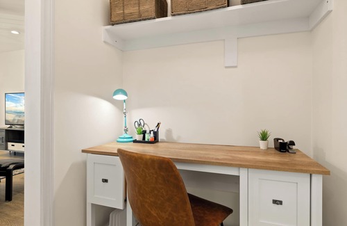 Bedrooms & Sleeping – Primary bedroom with a queen bed; second room can be a home office or sleeper sofa for extra guests. Comfortable for 1–2 people, can host up to 4 adults.