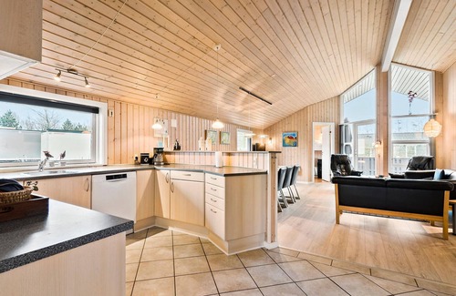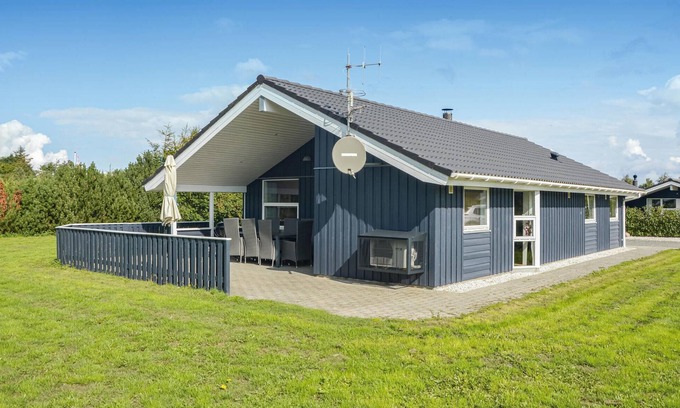This vacation home is situated on a large, open lawn, not far from Ringkøbing Fjord with ideal conditions for surfing and a larger bathing area and wellness center. Furthermore, there are many bike paths in the naturally beautiful surroundings and along the fjord. The house is tastefully furnished and has an excellently equipped kitchen-living room. From here you go directly to the partly covered south terrace, where you can enjoy the sunny days and warm summer evenings while barbecuing. The house is located near Bork Havn, where you can buy fresh fish almost all year round.