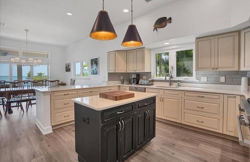 With four luxurious bedrooms, each equipped with a king-sized bed, this home comfortably accommodates up to eight guests. The four bathrooms ensure that everyone has ample space and privacy during their stay. Enjoy breathtaking views of the water from the comfort of your living area, or step outside to your private oasis.