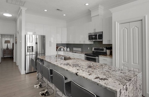 Come experience a stay at The Mirage, a beautiful 3-story Gulf-front home that can sleep up to 14 guests. This luxurious 5-bedroom, 5-bathroom beach retreat features a beautiful interior and a private Gulf-front heated pool.