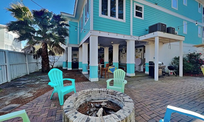 The ground floor of the home offers guests ease of access with a service elevator and interior stairs to the main living area. The ground level has a great covered patio. Here you can enjoy the hot tub and outdoor dining at the picnic table. There is a fire pit with seating around it for nighttime entertaining, and the outdoor shower runs hot and cold water to rinse off after a day at the beach! The home has a gas grill, Ping Pong table and custom cornhole set for outdoor entertaining. There is ample parking for two vehicles. This home is pet-friendly, with an additional fee. This is a beautiful home, meticulously decorated, and comfortably furnished to welcome you home away from home!