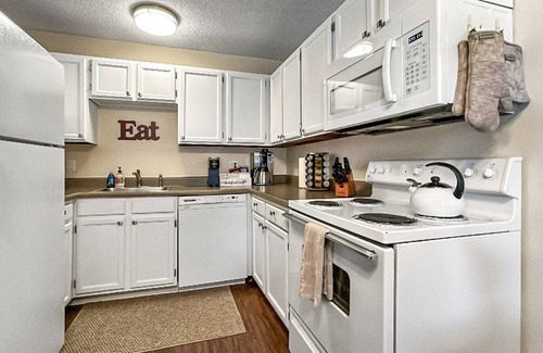 Discover a fully furnished condo with a complete kitchen featuring a full-size fridge, stove/oven, microwave, and dishwasher. The living room boasts a queen sofa bed, though note pull-out couches are most comfortable for younger children. Enjoy entertainment on a large SmartTV with YouTubeTV and DVR movies. WiFi is included.