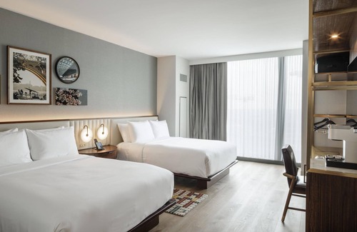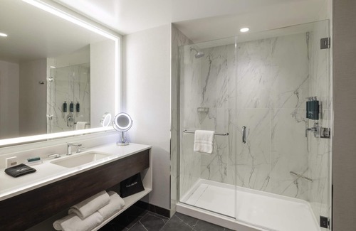 Hilton Arlington Rosslyn The Key offers 331 air-conditioned accommodations with safes and coffee/tea makers. A pillow menu is available. 65-inch flat-screen televisions come with premium cable channels and Netflix. Bathrooms include bathtubs or showers and hair dryers.