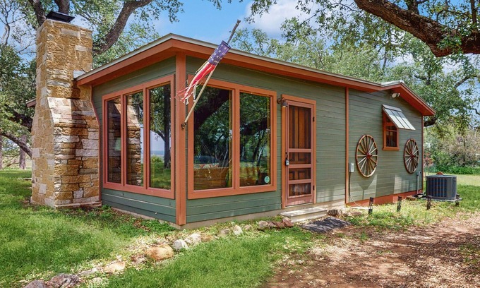 Originally a Texas Ranger's bunkhouse, this beautiful 1930s home retains all its original vintage charm from a location atop a cove shaped like a horse’s head. Take in the calming lake views and gorgeous sunsets as you let your worries slip away. The full kitchen, along with the stone fireplace and large windows, gives you plenty of space to spread out, while the cozy cabin makes a perfect spot for kicking back after a long day in the sunshine. Connect to the free WiFi to post photos of your big catch, treat your friends to a BBQ using the gas grill, or step back outside to build a fire in the firepit. Depending on what time of the year you're here, you'll behold beautiful wildflowers, various trees, and other flora, along with deer, foxes, owls, American pelicans, and more.