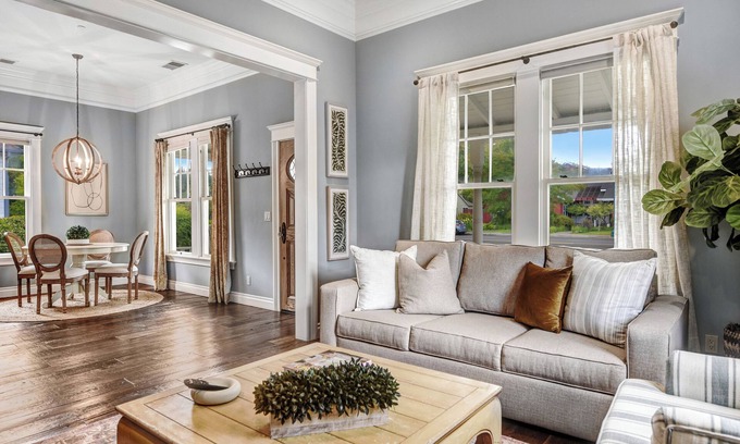 This amazing fully remodeled 1890 Bungalow features a commercial kitchen with custom cabinets and quartz countertops, 2 master suites each with it's own master bathroom along with an additional 1/2 bath. The house has upgraded central heat and air conditioning along with a washer and dryer. There was no expense spared when this high end vacation rental was completed. The 12 foot ceilings combined with the 15 inches of crown molding finish this historic home nicely. This charming Bungalow is within walking distance to the Sonoma Plaza (3 blocks), the house also comes with 4 bikes for your enjoyment to pedal to the nearby wineries or other site seeing around Sonoma. The front covered porch is an excellent spot to relax in the rocking chairs. The well landscaped rear patio has a gas BBQ, patio dining along with a very private Hot Tub. PLEASE NOTE: Due to Sonoma City Ordinance, the Hot Tub and rear patio is not available for use after 10 pm.