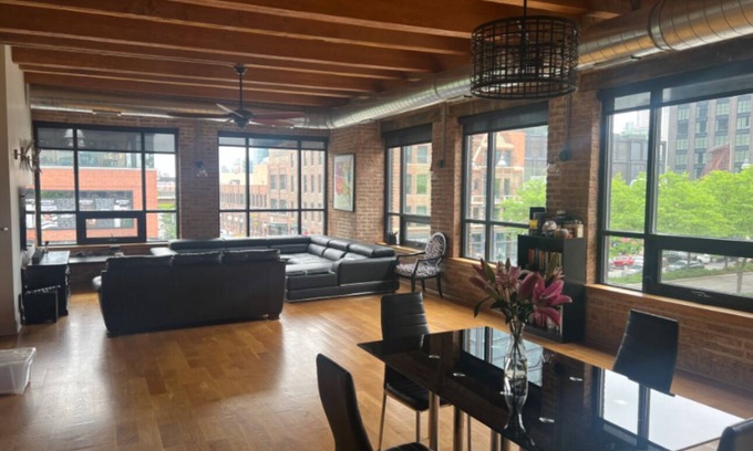 HUGE West Loop 3BR Penthouse Loft on Randolph with Rooftop and Garage Parking! is located in West Loop. HUGE West Loop 3BR Penthouse Loft on Randolph with Rooftop and Garage Parking! provides accommodation, featuring Air Conditioner, Security/Safety, Bedding/Linens, among other amenities. This Apartment features Air Conditioner, Security/Safety, Bedding/Linens, to make your stay a comfortable one.