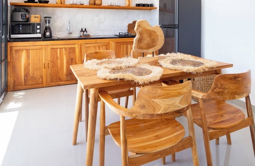 In addition, the villa offers a private closed kitchen with AC and each bedroom features a king-size bed and a unique square bathroom. Take advantage of these facilities to make the most of your stay.