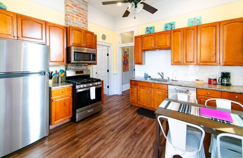 Welcome to your home away from home! This cozy Treme gem, located a block from tree-lined Esplanade Avenue is the perfect home base for a weekend of NOLA exploring. Featuring granite countertops with new appliances and a comfortable living room, along with a spacious loft space upstairs, this four-bedroom cottage has everything. Relax with beer and crawfish in our tree-lined backyard before hitting the French Quarter, just a 5 minute walk away.