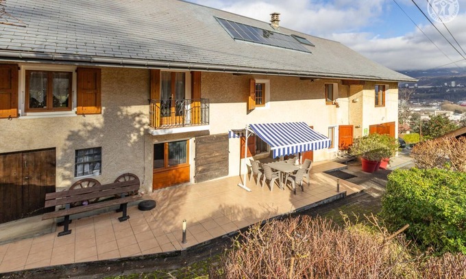 House 1 deposit + 1 slot. Ground floor + 1st floor: kitchen corner living room, 3 bedrooms (1 bed / 1 bed 2 p electric / 3 beds 1 p. dt 2 twin in 180x200cm), s. water (shower). Balcony + terrace + land (13000 m²). Bed linen included + beds made and linen House included. Ski La Féclaz 24km. Beach 9km (Lake Bourget). Thermal baths 11km (Challes-les-eaux). Farm country of 1865 renovated at 4km from the city centre & 9km from the beach (Lake Bourget). Residential area overlooking the French cluse. Good comfort. Wide balcony (28 sqm). Vast grassland property (13000 m²). Delightful countryside. Close to all shops & services. Renovated 1865 farm 4km from the city center of Chambéry, historic capital of the Dukes of Savoy, city of Art and History. Bus stop 500m. 24km from the slopes of the family resort of La Féclaz (world-renowned "Nordic" cross-country skiing site). 9km from the beach (Lac du Bourget, the largest natural lake in France). Ideally located to radiate in winter as in summer between the Regional Natural Parks of Chartreuse and the Massif des Bauges (alpine and Nordic skiing, hiking, cycling...). 11km from the thermal baths of Challes-les-Eaux. Aix-les-Bains, famous spa town 17km away. Many cultural, sporting and recreational activities nearby. Large property of 13000m² in natural meadows! The countryside in the city! Ideal for a family stay as for a business clientele!