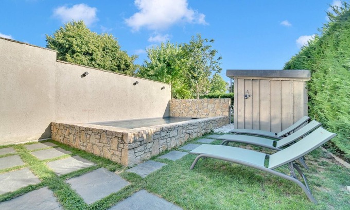 Individual house. Ground floor: kitchen, living room - laundry room, ski-bike room. Separate WC. 1st floor: 1 bedroom with walk-in shower (1 double bed 160x200 cm), 1 bedroom with 1 double bed 160x200 cm, 1 relaxation area under the slope, 1 separate toilet, 1 bathroom with shower Italianate and bathtub. 1 office area. 2nd floor: 1 bedroom with 1 double bed 160x200 cm, 1 bedroom with 4 single beds 90x190cm. Garden with terrace, swimming pool and private jacuzzi. Reversible air conditioning in each room. Private parking space. Old family home renovated with taste in the hamlet of Chacuzard in the heart of the Savoy vineyards and at the foot of the Granier. Spacious, bright and modern cottage. Comfortable with quality equipment. Garden, terrace and private swimming pool. Detached house at the foot of the Granier. "La Grange à Roger" is nestled between the vineyards of Apremont and the Bauges and Chartreuse Regional Natural Parks. Just 10 km from Chambéry and 20 km from Lake Bourget, the cottage is ideally located for exploring. A unique stay between lake and mountain!