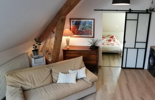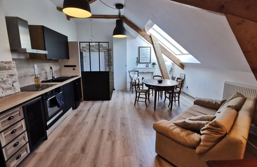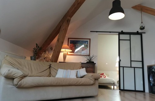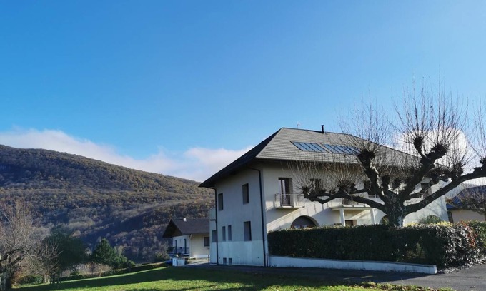 Apartment on the 3rd floor of a building with 6 accommodations. Entrance, living room-kitchen, 1 bedroom (1 double bed 160x200 cm) with bathroom (walk-in shower) and WC. Apartment with under slopes, floor space: 44 m². Cellar. Sheets + bathroom linen included. 2 private parking spaces. Comfortable apartment on the slope. Cocooning and warm for two people. Beautiful bright living room with a kitchen open to the living room. Master bedroom with bathroom. Very close to shops and services throughout the year. Comfortable apartment on the heights of Lake Bourget, the largest natural lake in France. In the heart of the village of Brison-Saint-Innocent, the first beach is 2 km away. Downtown Aix les Bains, famous spa town 4.8 km away. Cycle paths 500 meters away. Hiking and mountain biking trails near the lodge. Col de la Chambotte 15 km.