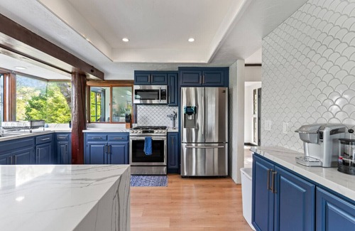 Welcome to Lake Reflection Point! Our Luxe retreat boasts 4 bedrooms and 4 1/2 baths, offering ample space for relaxation and entertainment. Enjoy breathtaking views of the tranquil lake and enjoy dining from the comfort of your gourmet kitchen. With close proximity to the charming village, guests can explore boutique shops and delectable dining options. Unwind on the spacious multi-level decks and soak in our hot tub. Please note there is no lake water access. Lake Arrowhead is a private lake. The only access is the private trails surrounding the lake.