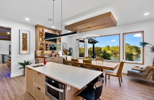 Immerse yourself in lakeside luxury at this stunning 7-bedroom retreat in Hot Springs, AR, designed to comfortably accommodate up to 22 guests. Each bedroom offers an oasis of luxury with plush beds and private bathrooms, crafted to provide the ultimate in comfort and privacy. The home’s layout perfectly balances expansive communal spaces with quiet corners for relaxation and personal reflection.