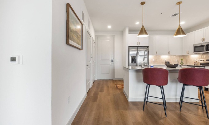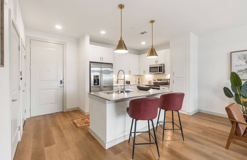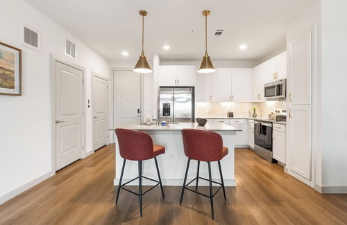 Experience modern comfort in this bright 1-bedroom apartment at The Merriman in San Marcos. Enjoy an open living area with smart TV, a private balcony, and a fully equipped kitchen with stainless appliances and quartz countertops. The king bedroom, walk-in closet, sleek shower, and in-unit laundry add convenience. Community perks include a resort-style pool, fitness center, outdoor kitchen, fire pits, and game lounge.
