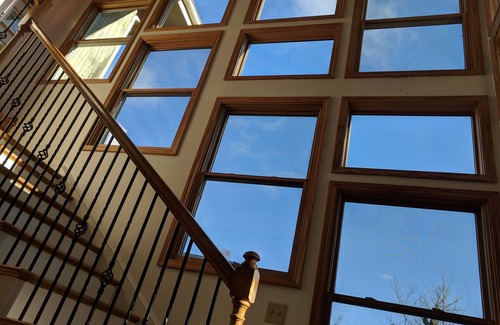 We provide everything you need to have a wonderful time with your family or friends. Inside, you will find clean and comfortable accommodations in a bright, open space with walls of windows for an abundance of natural light. The feeling inside our home makes you feel like you're inside a fancy tree-house while 4 decks create plenty of outside open-air space to enjoy the land. Cozy-up inside, watch a movie on our 11-foot cinema projector screen, take a soak in our 6-person hot tub or get out for a walk around the land, there's plenty to do.