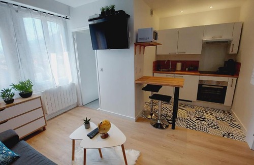 Le COSY Proche du centre ville de Grenoble is situated in Fontaine, 1.7 km from WTC Grenoble and 1.6 km from Grenoble Train Station, in an area where hiking can be enjoyed. Featuring city and mountain views, this apartment also includes free WiFi. The apartment has 1 bedroom, a flat-screen TV with cable channels, an equipped kitchen with a fridge and an oven, a washing machine, and 1 bathroom with a shower. Towels and bed linen are available in the apartment. AlpExpo is 6.9 km from the apartment, while Alps Stadium is 4.9 km from the property. The nearest airport is Alpes–Isère Airport, 45 km from Le COSY Proche du centre ville de Grenoble.