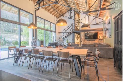 Featuring a garden, Le Garage à François offers accommodations in Le Bourget-du-Lac. This property offers access to a terrace and free private parking. Bourget Lake is 11 miles from the vacation home and Chambéry Train Station is 6.4 miles away. With free Wifi, this 6-bedroom vacation home features a flat-screen TV, a washing machine, and a fully equipped kitchen with a dishwasher and oven. Towels and bed linen are available in the vacation home. The property has an outdoor dining area. There is an on-site bar. The vacation home also provides an outdoor swimming pool and a hot tub for guests to relax in. SavoiExpo is 4.9 miles from Le Garage à François, while Fountain of Elephants is 7.2 miles from the property. Chambéry-Savoie Airport is 4.3 miles away.