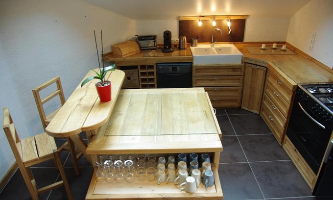 Food & DrinkTea/Coffee makerBathroomShower, Bathtub, Hairdryer, Toilet, Private Bathroom, Bathtub or shower, Towels/Sheets (extra fee), Toilet paper, Walk-in showerMedia & TechnologyTV, Satellite channels, Flat-screen TVActivitiesHot tubOutdoorsBalconyKitchenRefrigerator, Microwave, Dishwasher, Kitchen, Electric kettle, Kitchenware, Oven, Stovetop, Toaster, Coffee machine, Dining table, High chair, Wine glassesLiving AreaSitting area, Fireplace, Sofa, Dining areaBedroomExtra long beds (> 6.5 ft), Wardrobe or closet, Childrens' cribsGeneralHeating, Interconnecting room(s) available, Hardwood or parquet floors, Trash cans, Smoke Alarm, Carbon monoxide detectorViewGarden viewBuilding CharacteristicsPrivate apartment in buildingRoom AmenitiesDrying rack for clothing, Sofa bed, Socket near the bed, Non-feather pillowCleanliness & disinfectionHand sanitizer |