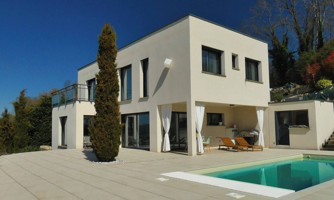 LES REFLETS DU LAC architect-designed house swimming pool/lake view | House in Bilieu