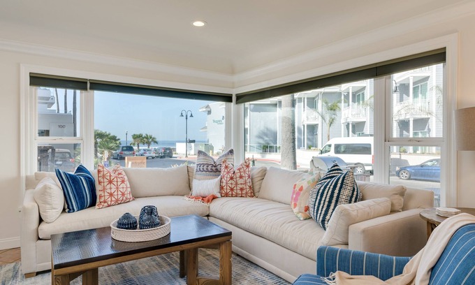 In total you have 7 bedrooms, 5 1/2 bathrooms, 2 full large kitchens, 2 family rooms, garage parking and off street parking, 2 natural gas BBQ's, deck and patio. There are views of the beach, ocean, mountains and pier.