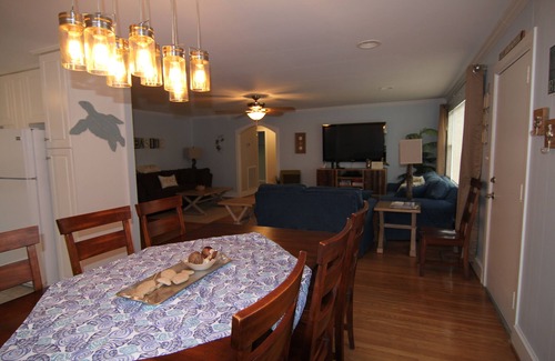 Located just across the street from the public beach access, you are just steps away from long walks along the beach. The house is located two blocks from the historic district and pier. It is a great location to create family memories.