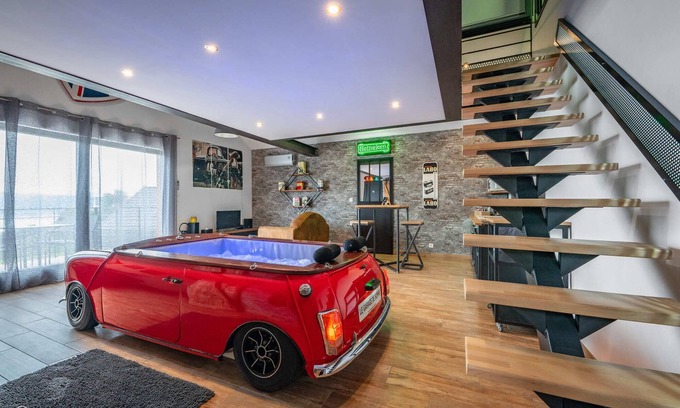 Loft Insolite Avec Jacuzzi Privatif et vue lac is located in Aiguebelette-le-Lac. Loft Insolite Avec Jacuzzi Privatif et vue lac provides accommodation, featuring Designated Smoking Area, Balcony/Terrace, Wellness Facilities, among other amenities. This Ski Chalet features Designated Smoking Area, Balcony/Terrace, Wellness Facilities, to make your stay a comfortable one.