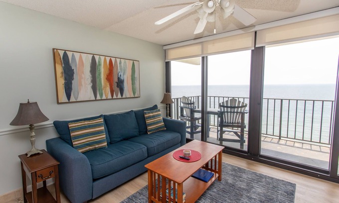 Come Relax on your large private oceanfront balcony with unobstructed views of the ocean. Enjoy the resort amenities, which include 2 pools (indoor and outdoor), hot tub and outdoor kiddie pool, and cornhole. We have an onsite family friendly beach bar and grill that offers a variety of special drinks and food.