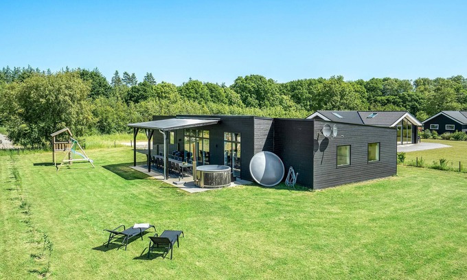 A beautiful and very well furnished vacation home with countless activities, located by the beautiful Fjellerup. Here you can enjoy a game of billiards, play table tennis or darts, or jump in the swimming tub outside while the others prepare dinner on the grill. There is plenty of room here for a large family or several families traveling together. In the beautiful kitchen you will find all the equipment, it is connected to the dining area and the attractively furnished living room. On the terrace you can sit comfortably and chat.