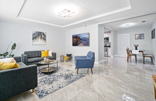 Find your happiness in this attractive getaway. It offers a place to escape the everyday hustle and bustle, cuddle on the sofa, watch a movie, unwind in the backyard, and explore exciting Miami attractions.