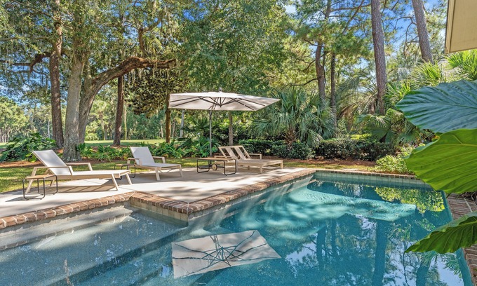 Where modern elegance meets timeless coastal charm, Heritage House is a beautifully redecorated 4-bedroom, 4-bathroom home, offering golf course views, a private heated pool, and an expansive outdoor living space. Nestled on the iconic Heritage Road in Sea Pines, this spacious retreat comfortably sleeps up to 12 guests, making it perfect for families and groups looking for a refined Hilton Head getaway.