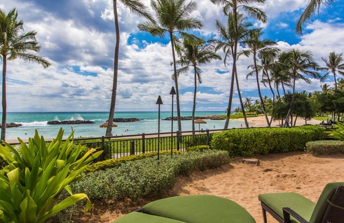 THIS IS THE BEST VALUE ONE CAN GET AT THE 5 STAR ACCOMODATIONS AT THE BEACH VILLAS AT KO OLINA! Located in the Beach Villas at Ko Olina, within the Ko Olina resort and Marina, this relaxing 2 bedroom 1200 sq ft totally upscale villa has mountain and distant ocean views. Wolf, Bosch and subzero appliances in fully equipped large open kitchen designed by Roy Yamaguichi of Roy's restaurants.