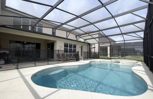 Delicate decoration! Great Location! Perfect place to stay with your family close to Disney Parks, Golf Courses, airport, family-friendly activities. You’ll love the place because of the ambiance, the outdoor space, Swimming Pool, and Spa.