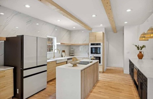 Inside, you’ll find WWI-era barnwood accent walls, marble showers, designer furnishings, and high-end finishes throughout. The heated pool room is a guest favorite as well!