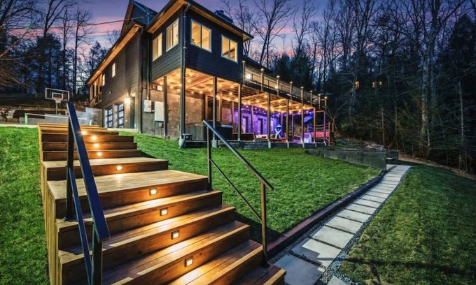 Step outside to your private sports complex: shoot hoops, play volleyball in the sand, or play pickleball on the driveway. Take the paddle boat out for a float, then enjoy s’mores around the modern fire pit as the sun sets over the Smokies.