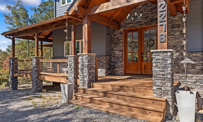 Consider this chalet your home away from home while you visit Murphy. This luxury retreat offers four large bedrooms, including a king bed, queen bed, full bed, twin bed, twin XL bunk beds, Murphy bed, and a child bed, perfect for families or groups. With five bathrooms featuring both showers and a relaxing bathtub, guests enjoy plenty of space and comfort. The welcoming atmosphere invites you to unwind after a day of adventure. Hot tub, Party Deck, Grill, Amazing views of the Great Smoky Mountains, Game Room, Theater room, fireplaces, exercise room and more! Close to downtown Murphy and Harrah's Cherokee Valley Casino. Nearby hiking, lakes, restaurants, golf, etc.